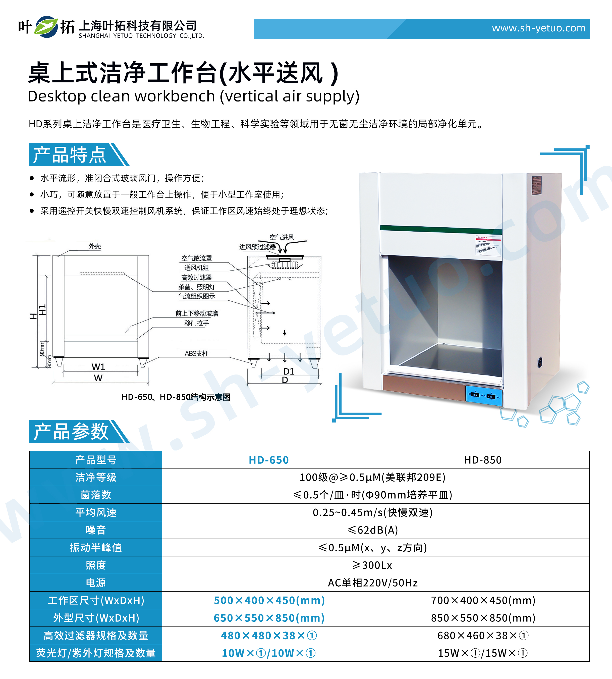 Product features of Yetuo HD-650 desktop clean workbench (horizontal air supply)