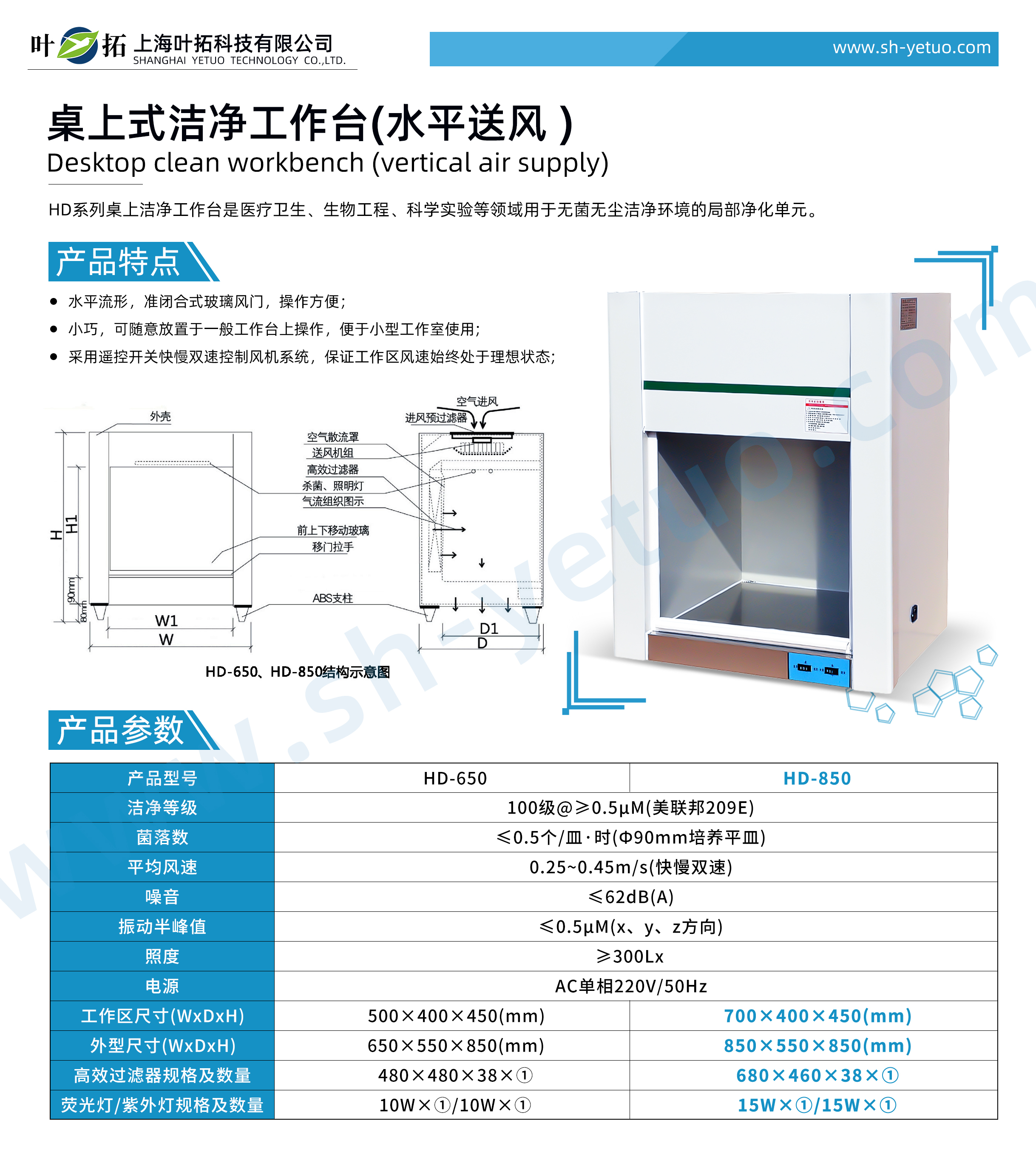 Product features of Yetuo HD-850 desktop clean workbench (horizontal air supply)