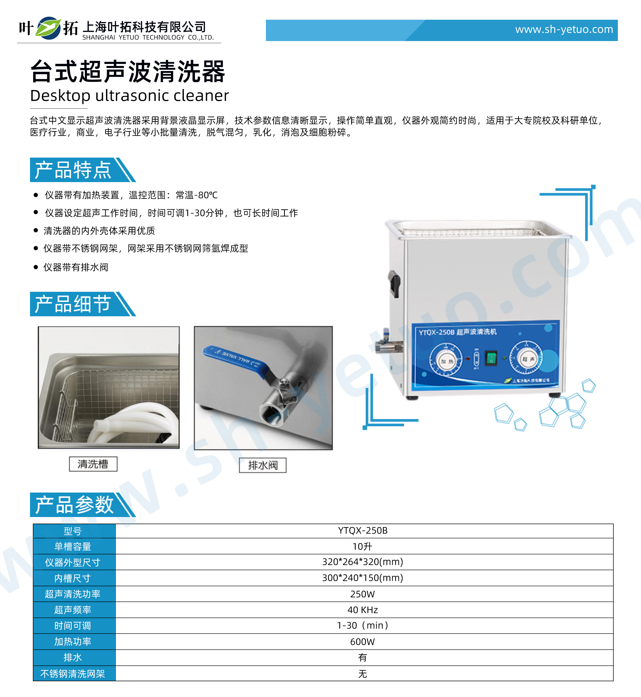 Yetuo YTQX-250B Desktop Ultrasonic Cleaning Machine Product Features: