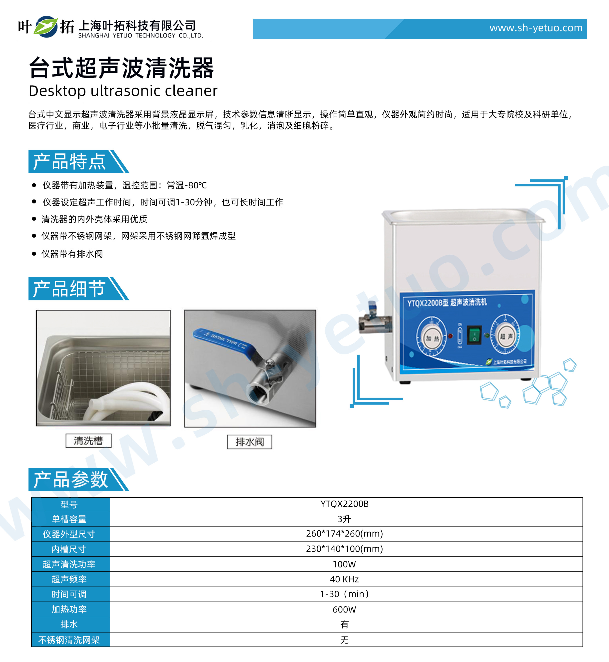 Yetuo YTQX2200B Desktop Ultrasonic Cleaning Machine Product Features: