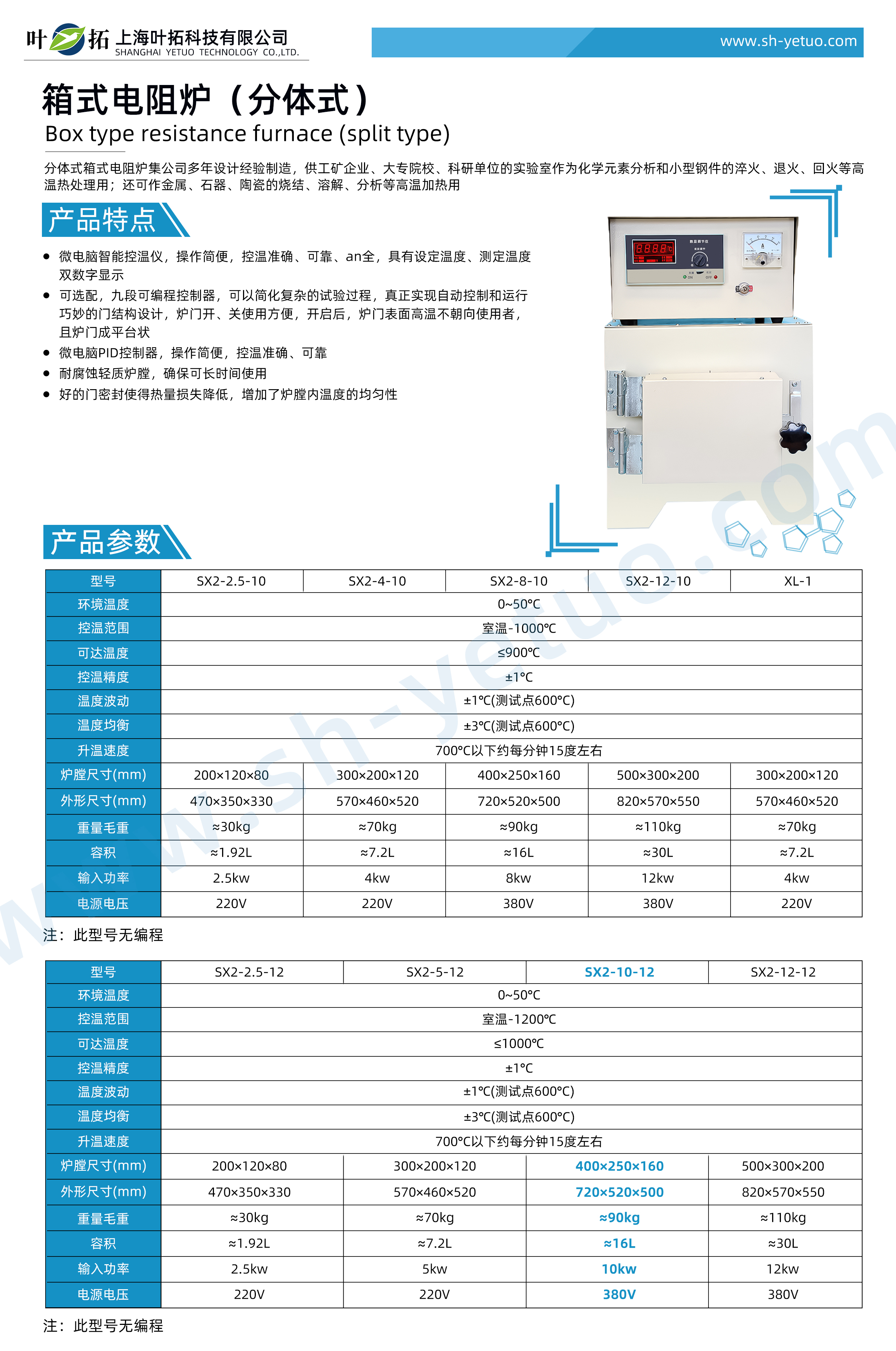 Characteristics of Ye Tuo SX2-8-12 Split Box Resistance Furnace Products