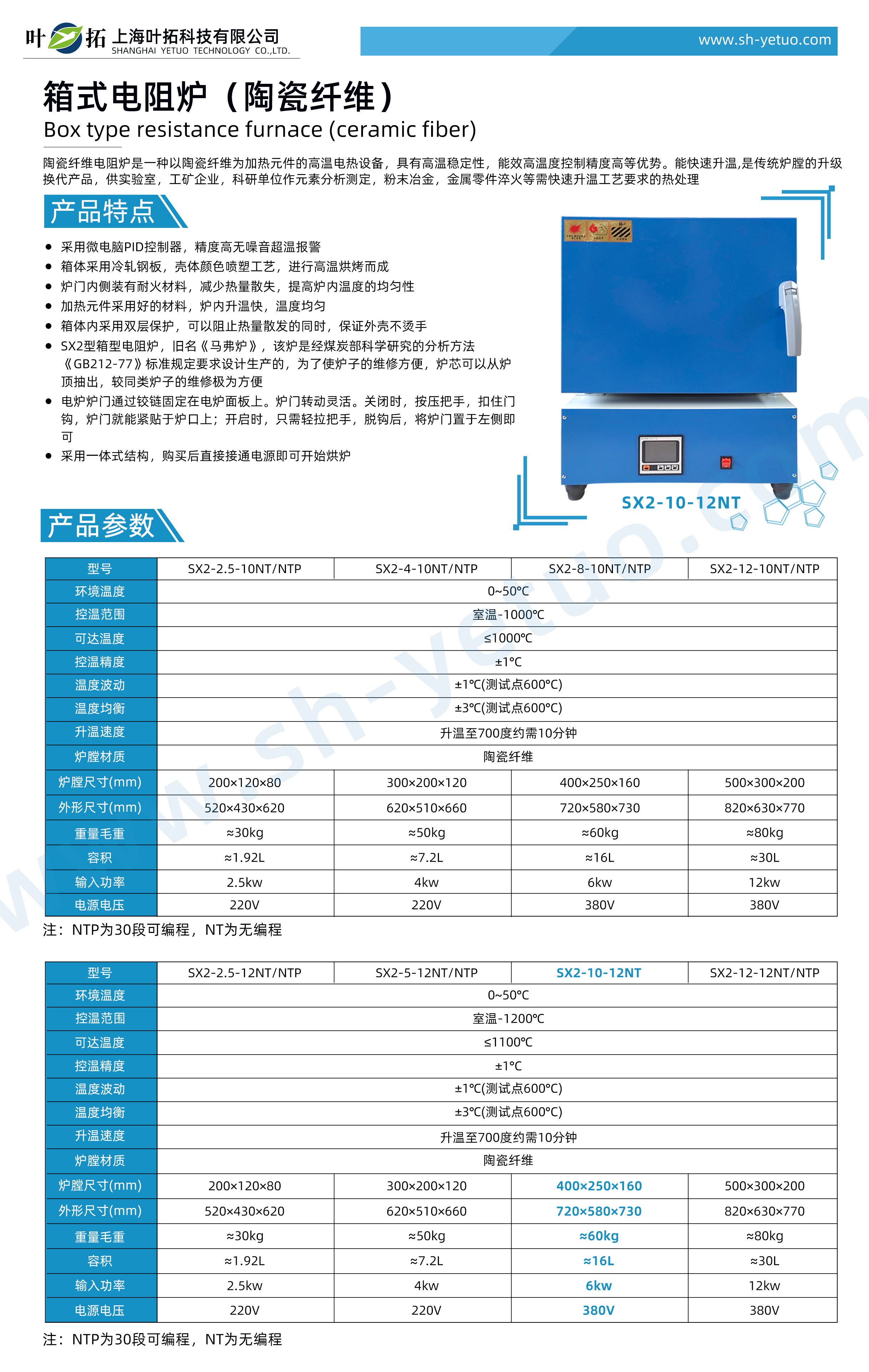 Characteristics of Ye Tuo SX2-10-12NT Ceramic Fiber Box Resistance Furnace Products
