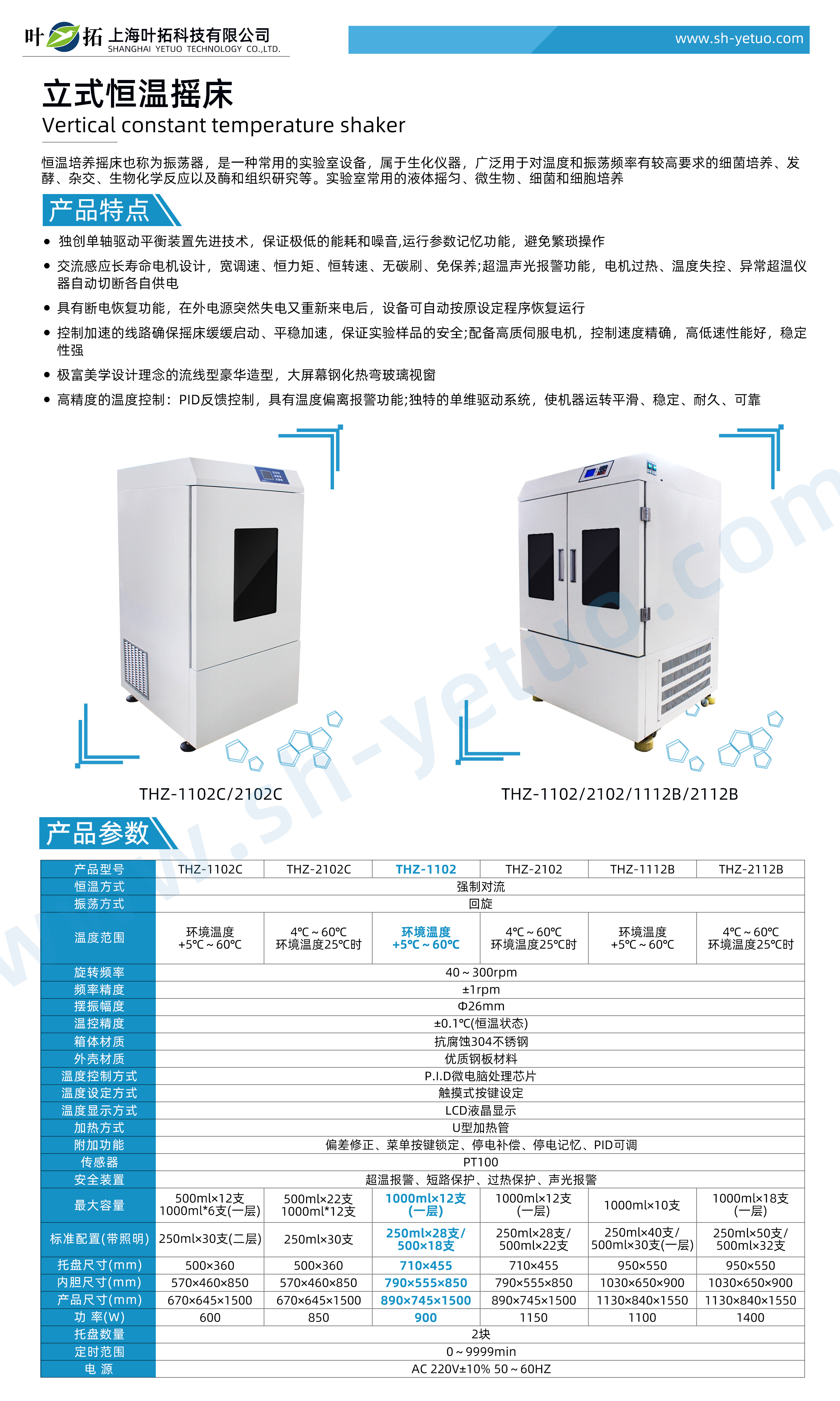 Features of Ye Tuo THZ-1102 Vertical Constant Temperature Shaker