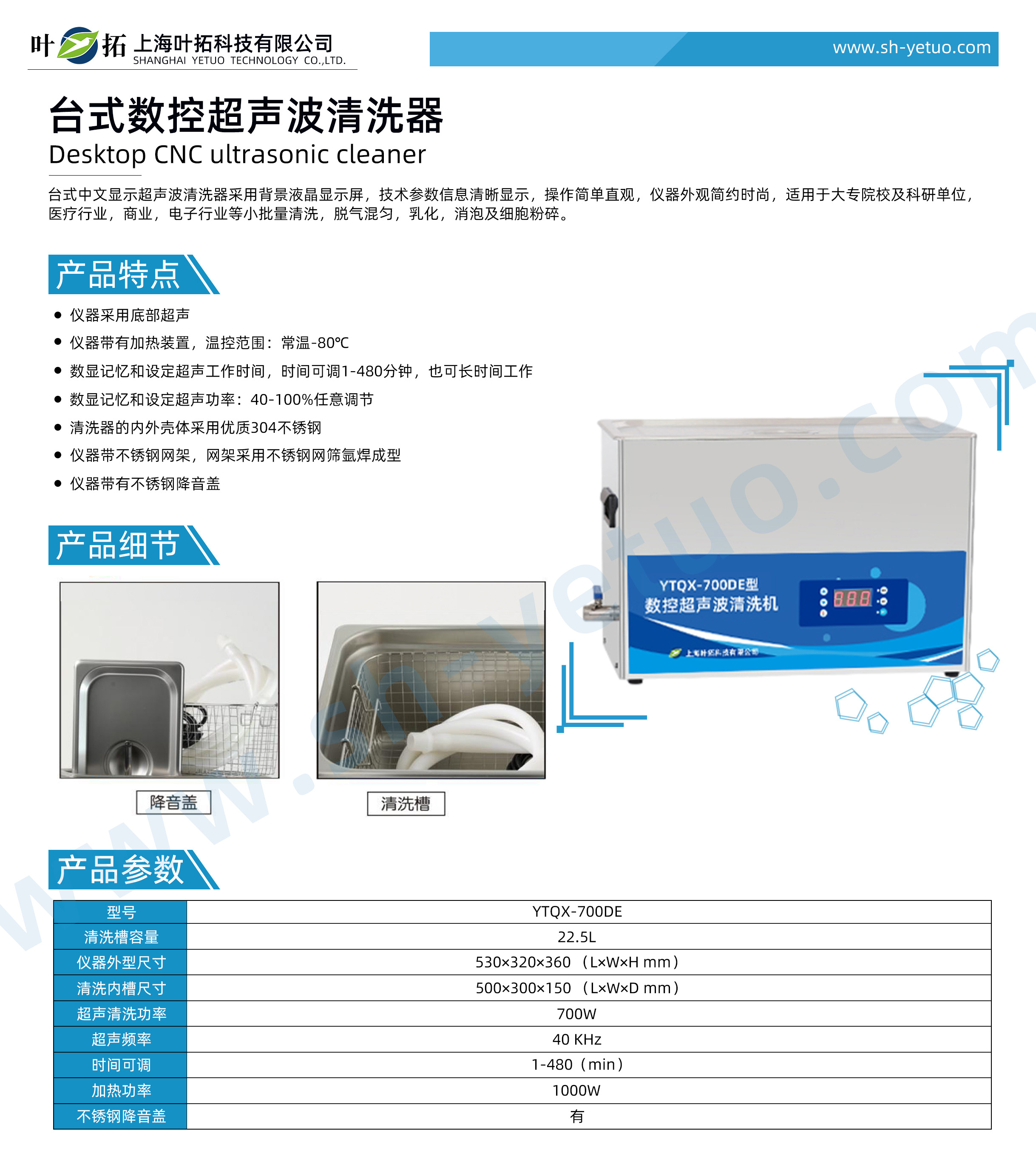 葉拓 YTQX-700DE 臺式數控超聲波清洗機詳細參數
