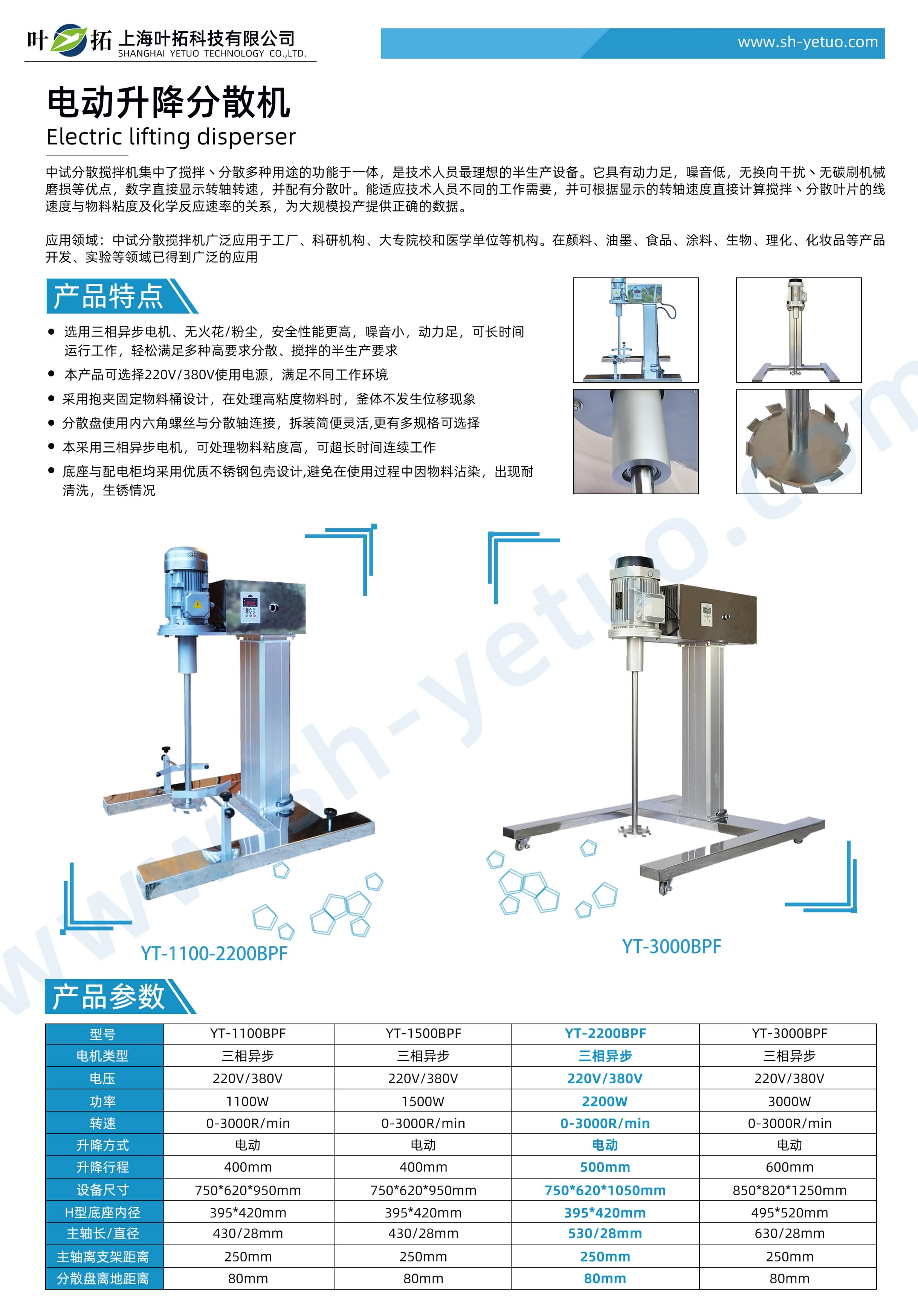 葉拓 YT-2200BPF 電動升降型分散機詳細參數(shù)